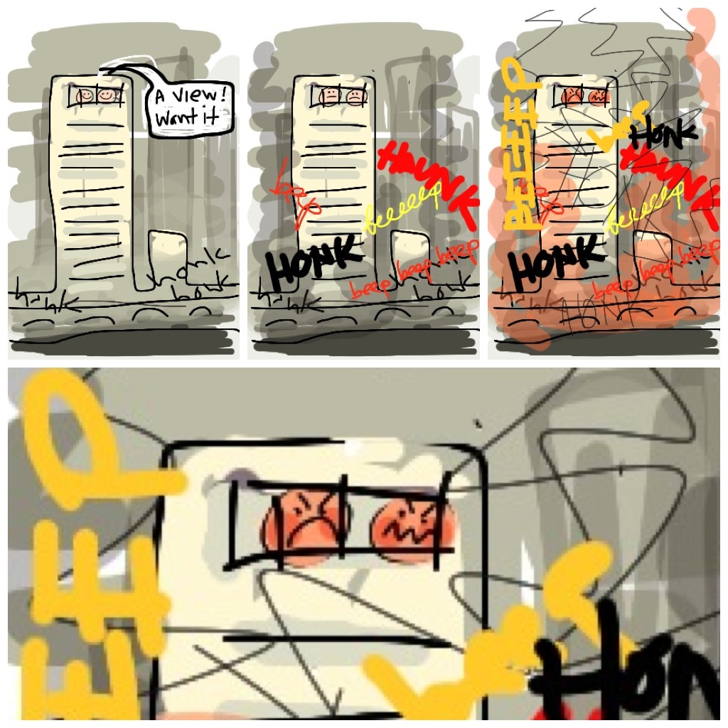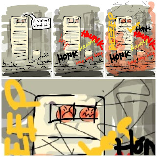 | Wide open highway and Luke in the separated bike lane. That motorcycle-pickup-lumber-hauler is awesome. |
